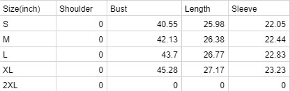 All Clothing items suggest go 1-2 size up.